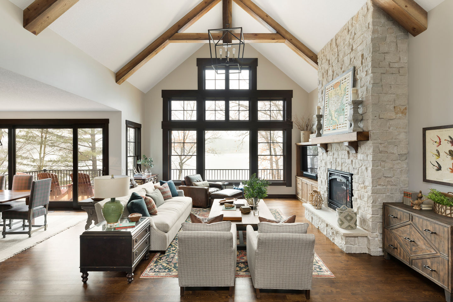When this family decided to rebuild their cabin in Amery, Wisconsin we knew they wanted to have a space that would be comfortable and fresh with a taste of traditional. This lake home is a great example of how traditional doesn't have to mean heavy or "old." By bringing in some curvier lines and a few darker anchoring pieces of furniture while keeping the rest of the space bright and new we were able to give them the traditional feel they wanted that is approachable for life at the lake.